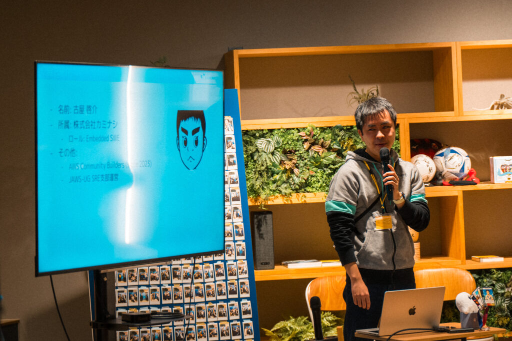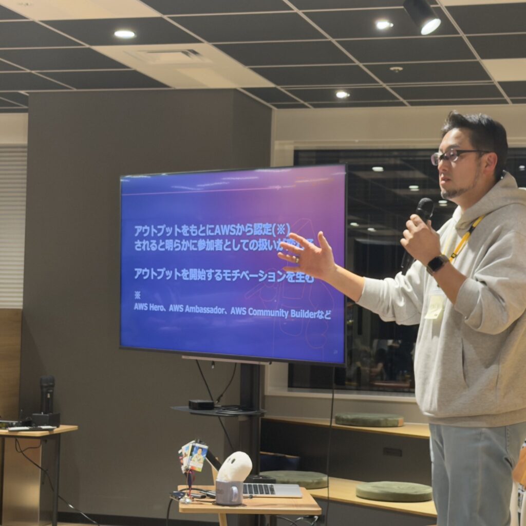 (登壇の机には山口さんのスペシャルなAWS BuilderCardsが・・・👀)