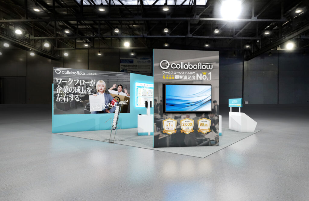 本展示会では、ワークフローシステム「コラボフロー」をご紹介します。コラボフローブースにはスタッフが常駐していますので、業務の課題等を気軽にご相談ください。コラボフローを実際に体験できるデモ機もご用意しています。